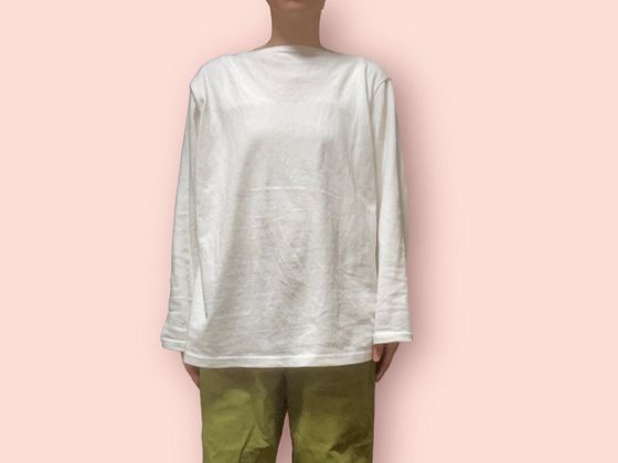 そんな理由から、普段Mサイズの服を着ている身長150㎝の筆者ですが、LLサイズを購入しました。カラーはオフホワイトです。