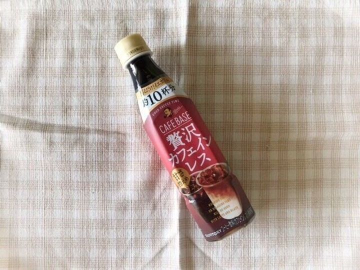水で希釈するカフェベースも。手軽にカフェインレスのアイスコーヒーが飲めるので、暑い日に重宝しますね。ミルクで割ればラテになります。上の「ボス 贅沢カフェインレス」は甘さ控えめのタイプです。