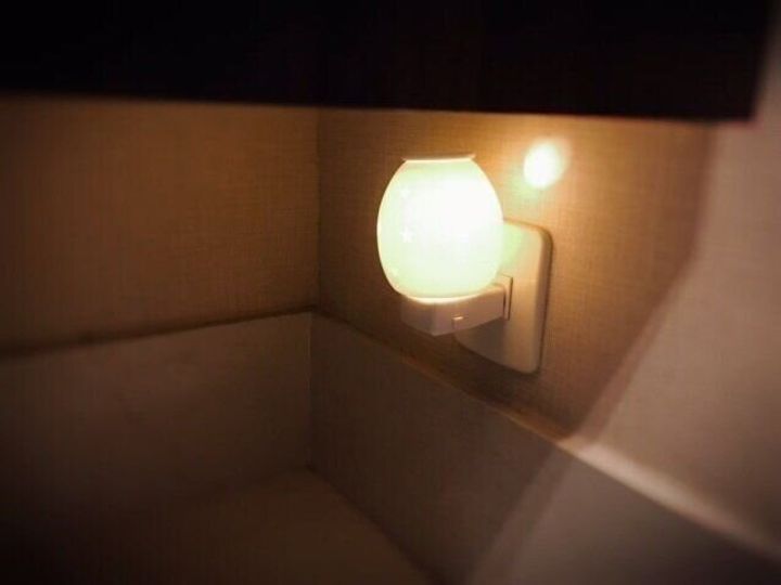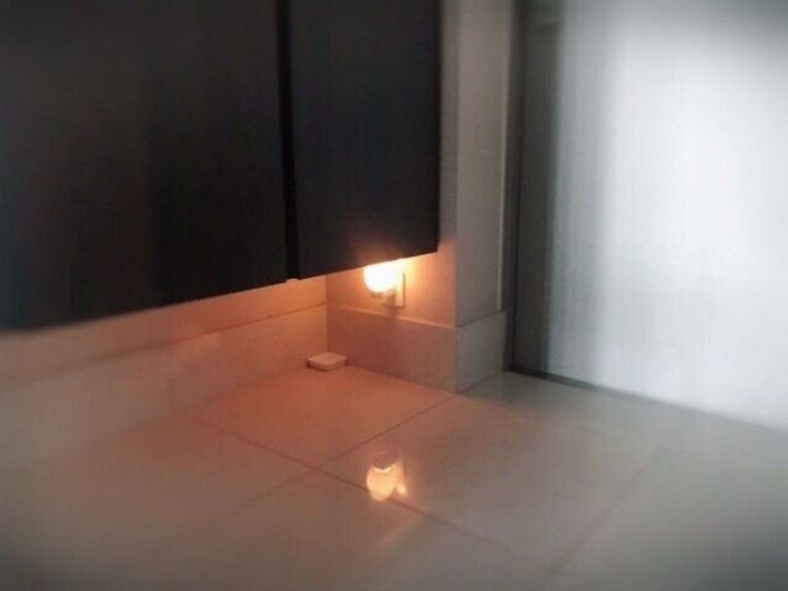 茶葉を入れたアロマライトは、玄関の靴箱の下に設置。フットライトの役目も果たします。