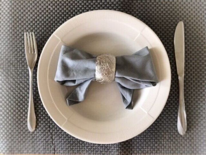 テーブルナプキンとナプキンリングを使用する、ハズレのないスタイリングです。基本的に丸めたり折り畳んだりしたテーブルナプキンをリングに通すだけ。じゃばらに折ったり、リボン風にしたり、お好みでアレンジしてください。