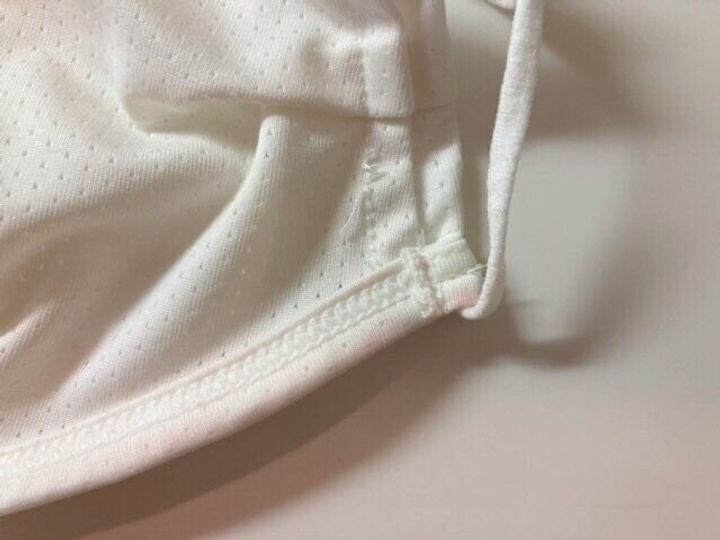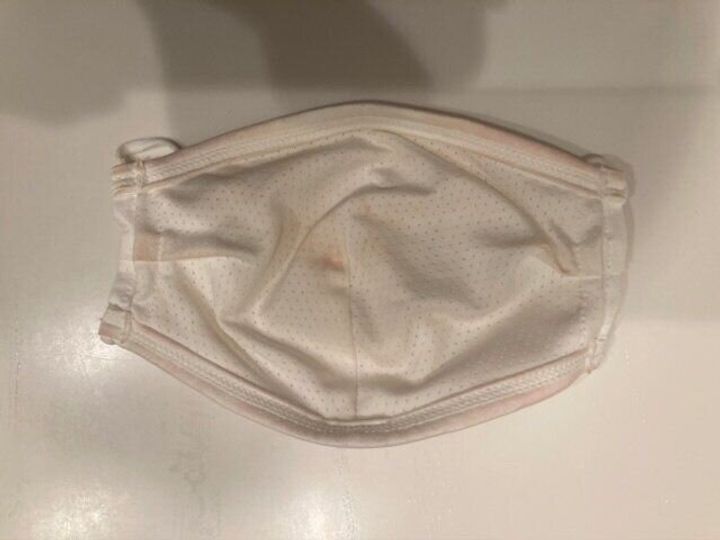 夏用の白い布マスク。毎日洗濯用洗剤で手洗いしていますが、汚れが気になってきました。そこで塩素系漂白剤を使ったところ、まさかのピンク色に!なぜ⁇