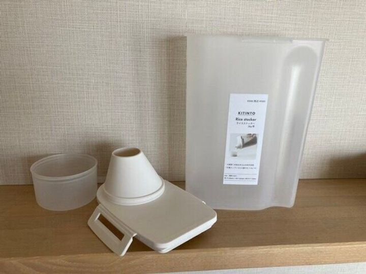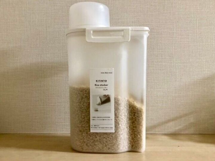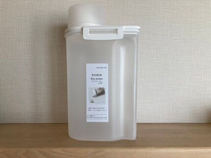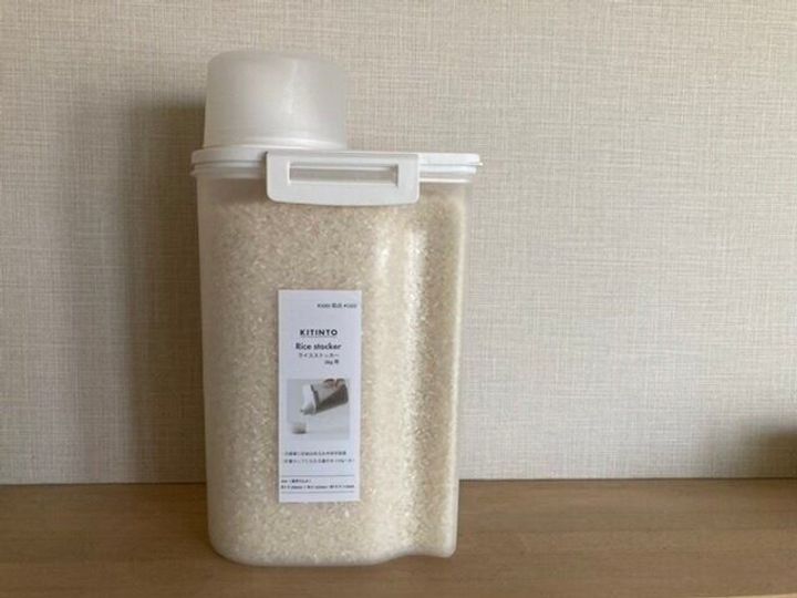 「スリコ」の愛称でおなじみ、3COINSのライスストッカーの使い勝手をチェックします。お値段は550円!