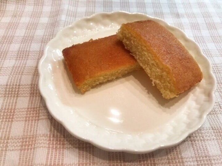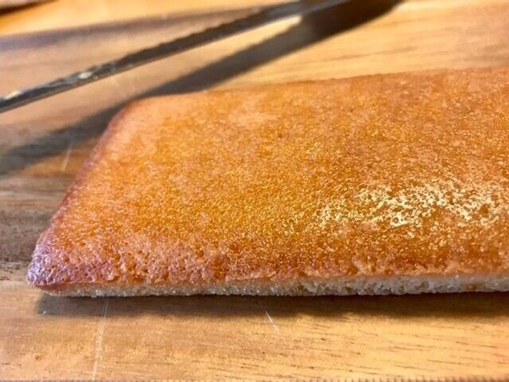 横から見るとこんな感じです。大きくてもしっかりフィナンシェ特有の金塊形。端の濃い焼き色もおいしそうですね。期待が膨らみます。