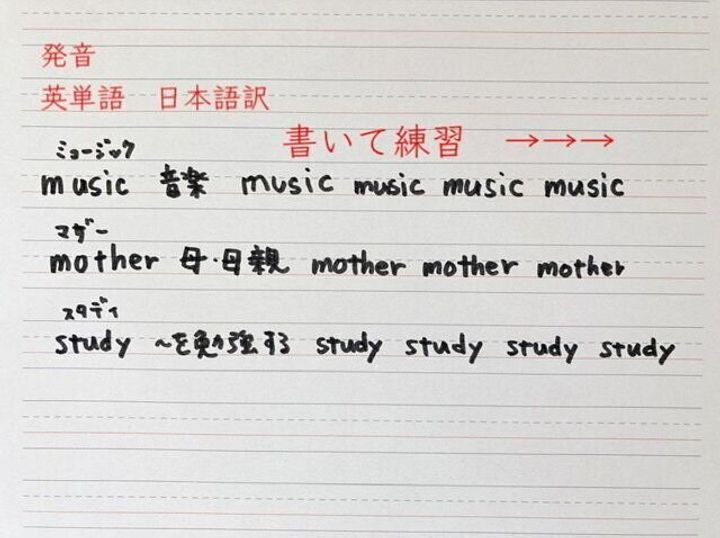 具体的な単語の覚え方について。読めない英語は書けません。「単語の音(読み方)と日本語の意味をが繋がる」ようにします。賛否はありそうですが、英単語にカタカナで読みをふっていいと思います。