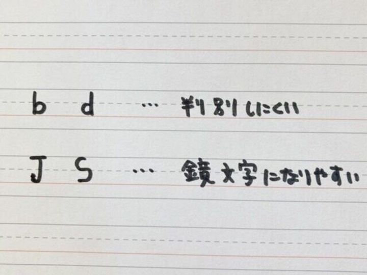アルファベットには、"b"と"d"などの区別がつきにくい文字、"S"や"J"などの反転しやすい文字があります。最初は子どもが混乱しても仕方ありません。間違えても優しくしてあげてください。