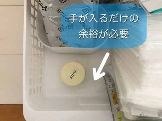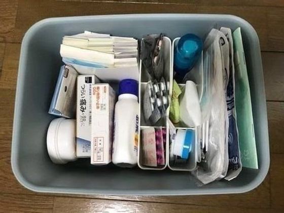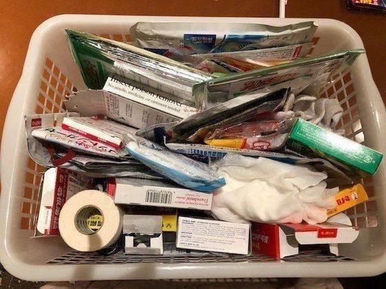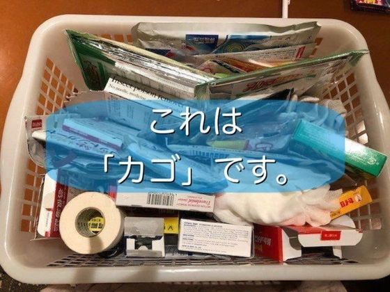 薬局で買えるものを入れた「カゴ」です。仕切りのない容器に詰め込んだ状態なので、何かを取り出せばそこから全てが崩れていくのは、致し方ない。