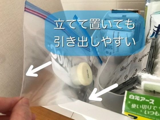 これなら狭い場所に立てて入れられるし、袋ごと引き出せばいいので取り出しも簡単です。