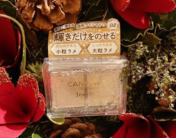 またお手持ちのアイシャドウに重ねると輝きがよりプラスされます。私はベースとしてこちらのジュエリーシャドウベールを使い、その上にブラウンのアイシャドウを重ね塗りし、アイメイクを完成させています。