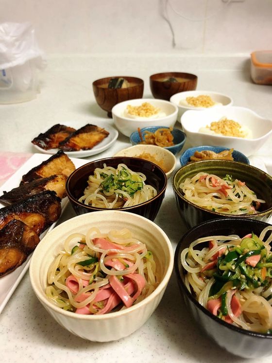 「お肉~~~~」って言いがちだけど魚の日も作って、そんな日は副菜もろいろ並べて見た目で満足が行くように工夫しています。