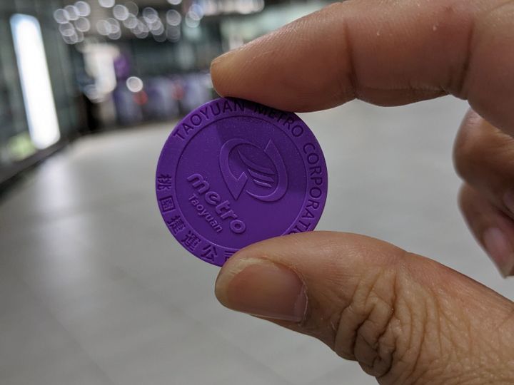 この紫色のコインは、桃園空港MRTに乗車するトークン(切符)になります。