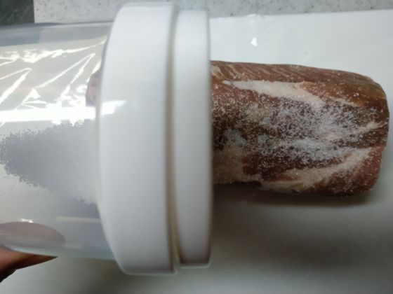 塩豚を作る時に、片手でふりふりするだけでまんべんなく塩がまぶせるので、とっても重宝しています。