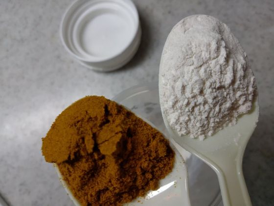 『小麦粉ふりふり』に小麦粉と、小麦粉の半量のカレー粉を入れたら混ぜ混ぜします。