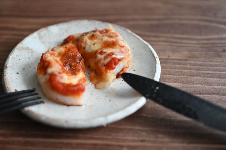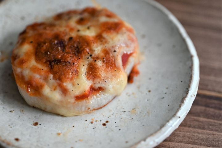 軽く焼いた長芋にトマトソースとチーズをのせて焼くひと品。