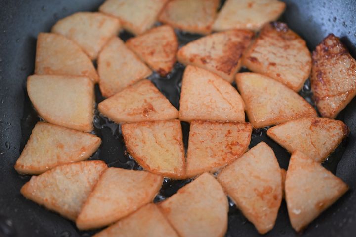 長芋の両面に焼き色を付けて取り出す。
