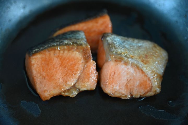 (3)全面に焼き色がついたら、バターとめんつゆを加えて鮭に絡めて完成。