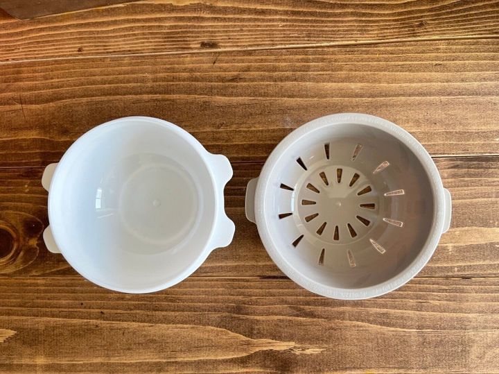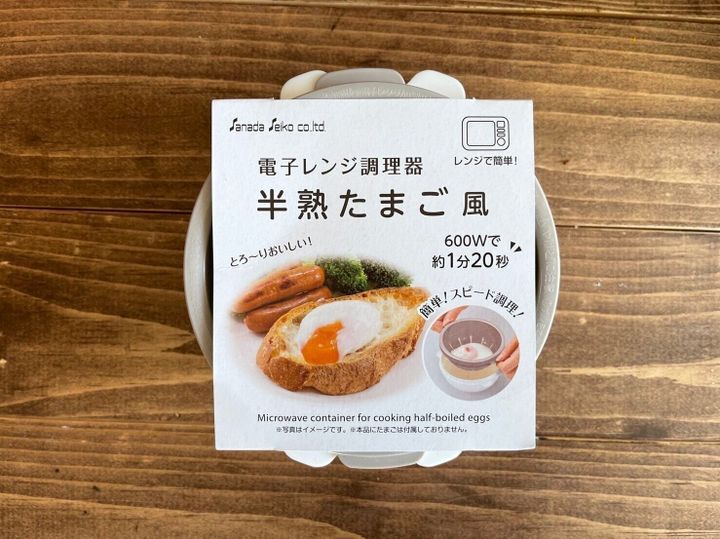 電子レンジで1分20秒加熱するだけで半熟卵風ができる!という商品で
