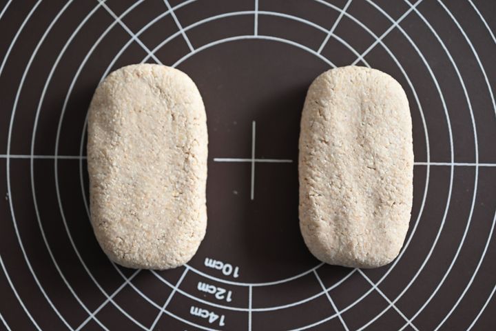 (3)2等分にし、厚さ1.5㎝程度に成型する。
