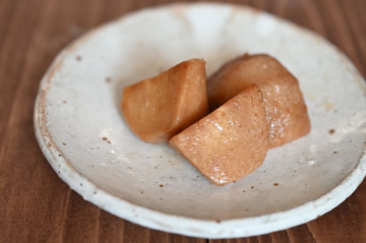 (3)熱いうちに皮を剥き、食べやすい大きさに切り、(1)に15分ほど漬ける。
