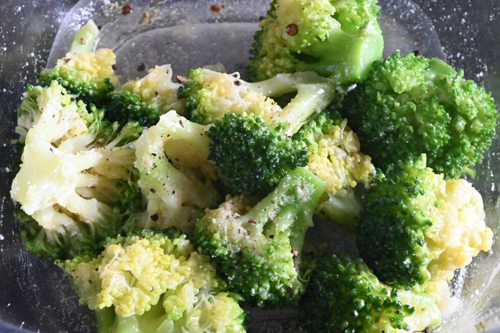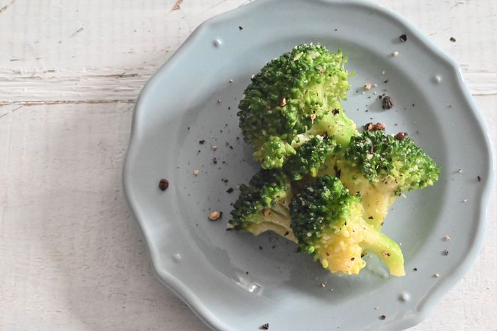 (1)ブロッコリーは子房に分け、2分茹でて水気を切る。