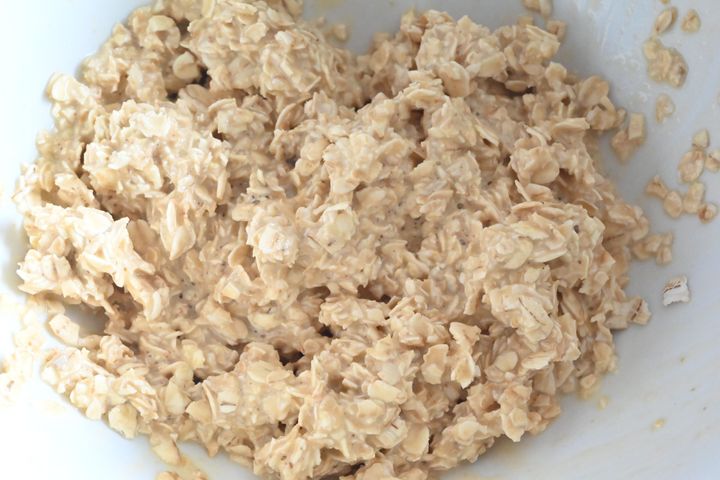 (1)オートミール、卵、塩、水30mlをよく混ぜ合わせる。