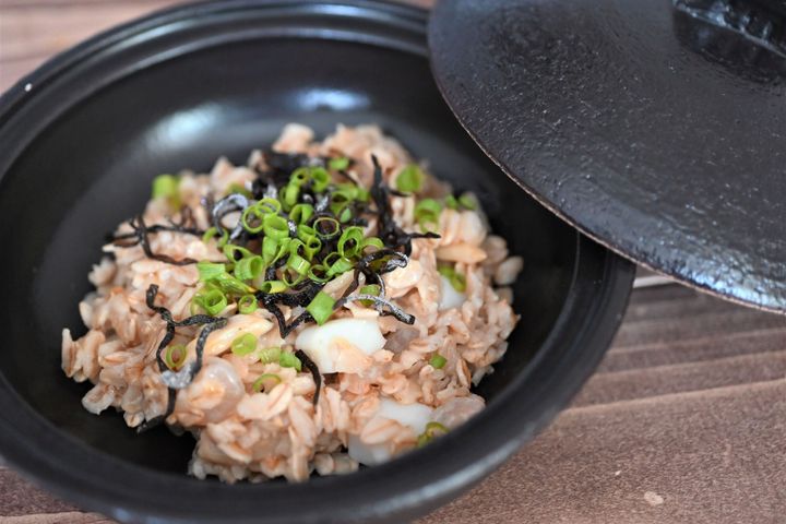(2)炊飯器で通常炊飯し、全体をしゃもじで混ぜ合わせて完成。