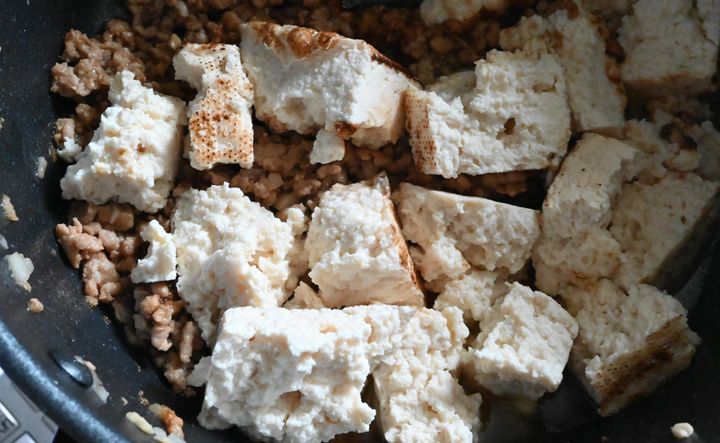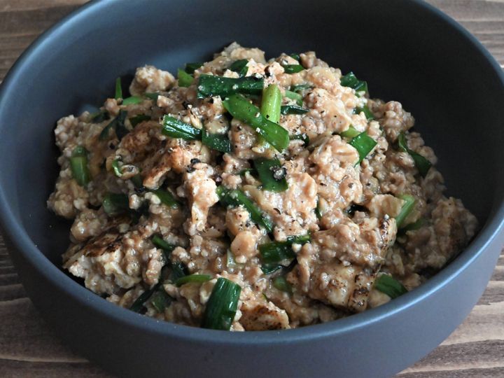 もっと食べたくなる!オートミール肉みそ豆腐炒め