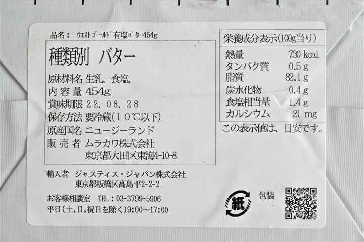 賞味期限が長いので、通常のバターより大きいサイズですが無理なく使い切れますよ。