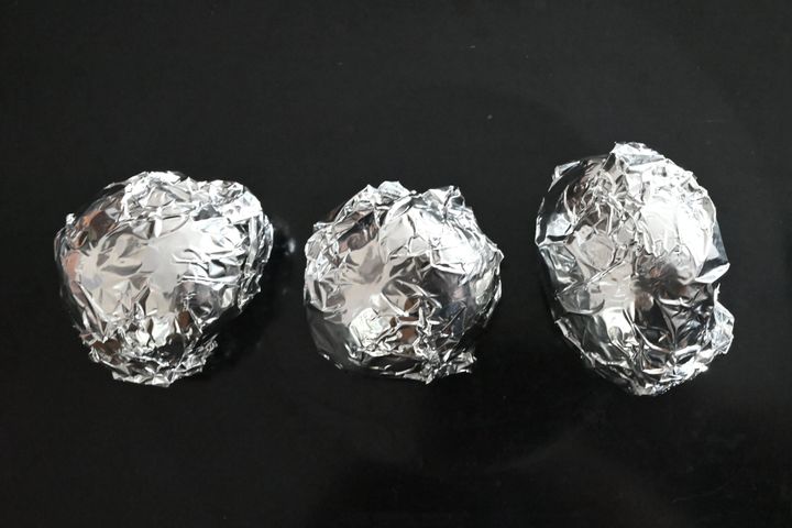 新じゃがいもをしっかり洗い、アルミホイルで1個ずつ包みます。