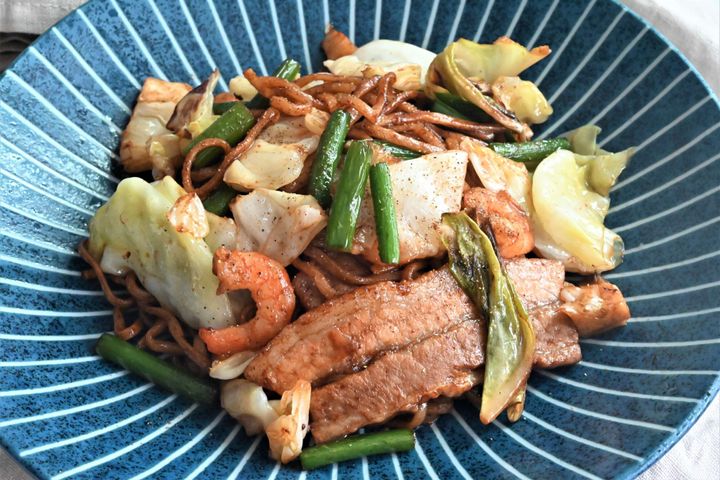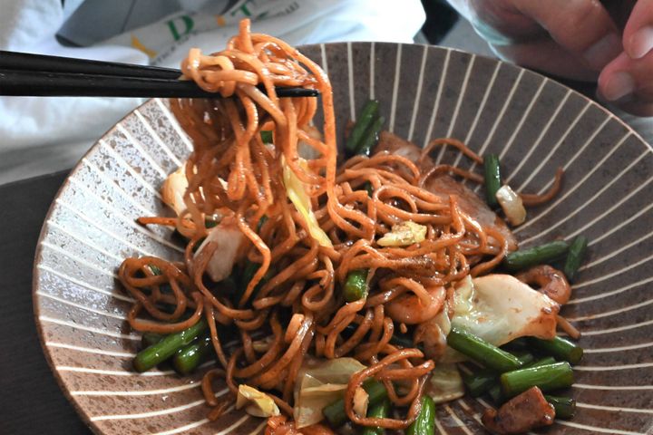 醤油ベースの濃厚な味の焼きそばを自宅で味わえる商品です。