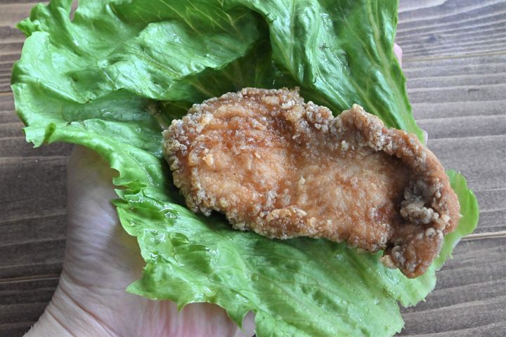パッケージに記載されている作り方も鶏肉1枚を丸ごと揚げる方法です。