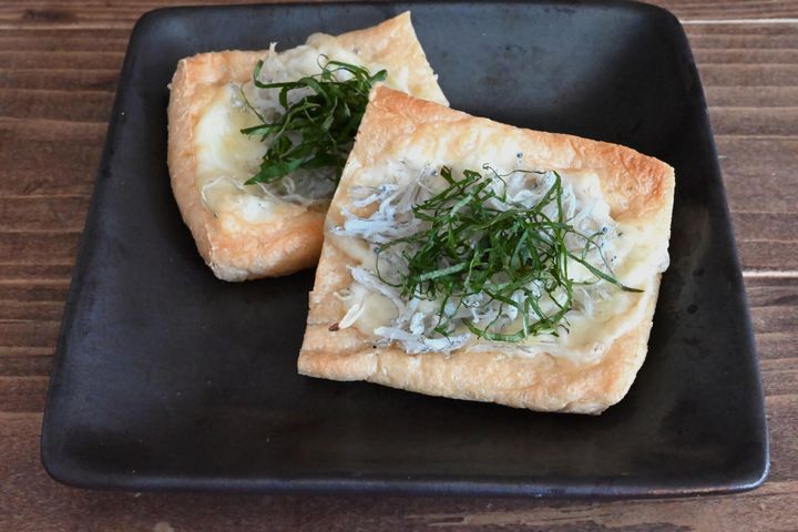 油揚げにチーズ、しらすを合わせるおつまみレシピです。