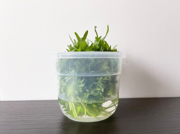 茎の先端が水につかるようにしてフタをして冷蔵庫で保存しましょう。