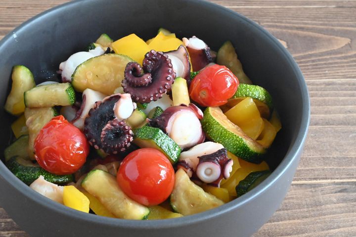 夏野菜を堪能しよう!色鮮やか!簡単「夏野菜とたこのめんつゆ炒め」のレシピ