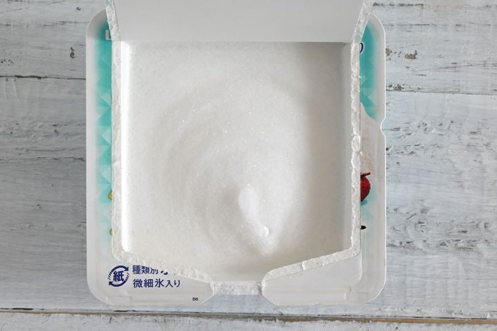 「爽」ならではの微細氷入りのシャリシャリとした食感と相まって食べ始めたら止まらなくなるアイスですよ。
