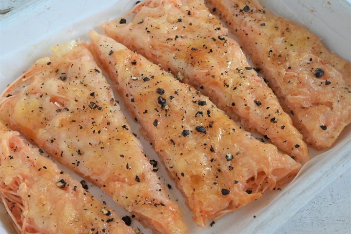 魚焼きグリル(またはトースター)でチーズに焼き色がつくまで加熱し、食べやすい大きさに切って完成。