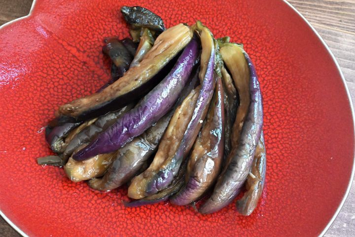 (1)鍋に湯を沸かし、塩を加える。なすを入れて4分茹でる。