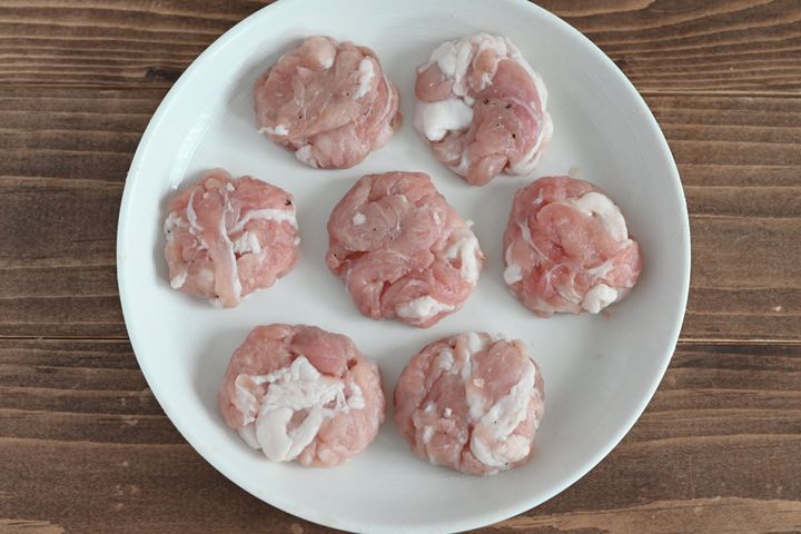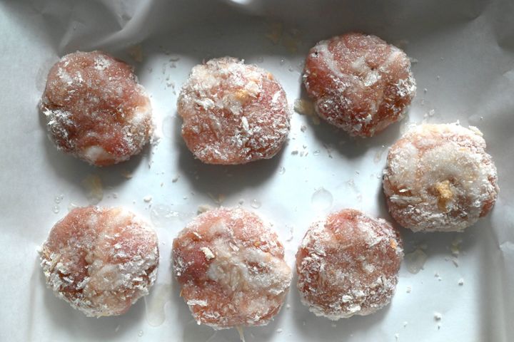 揚げずに、豚こま切れ肉で作るひと口とんかつ、