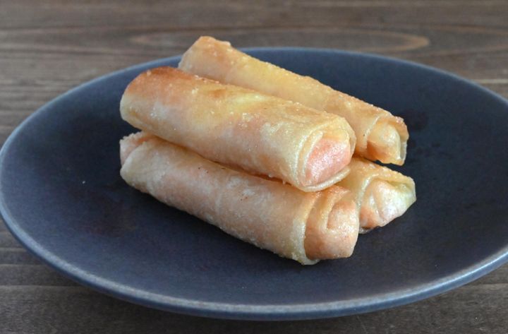 (4)フライパンにごま油を入れて中火にかけ、春巻き全体に色がつくまで加熱して完成。