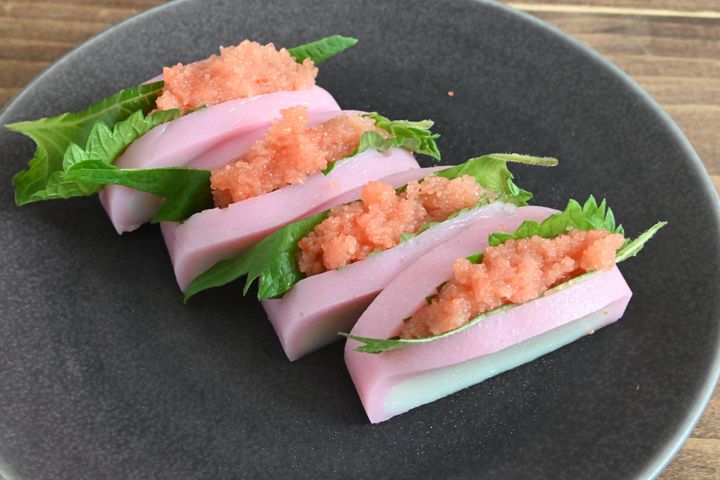 明太子の塩気と大葉のさわやかな風味をかまぼこがやさしく包んでくれますよ。
