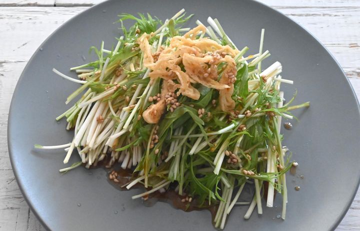 食感が楽しい♪水菜と油揚げの中華風サラダ