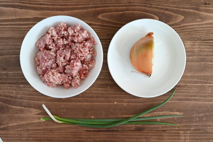 自分で用意するのは豚ひき肉200g、玉ねぎ1/4個、小ねぎ3本だけ!