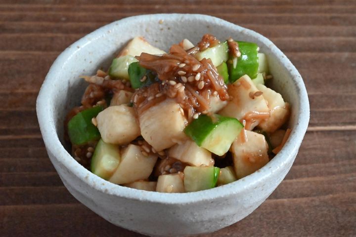長芋のシャキシャキ食感ときゅうりのポリポリ食感がおいしい、