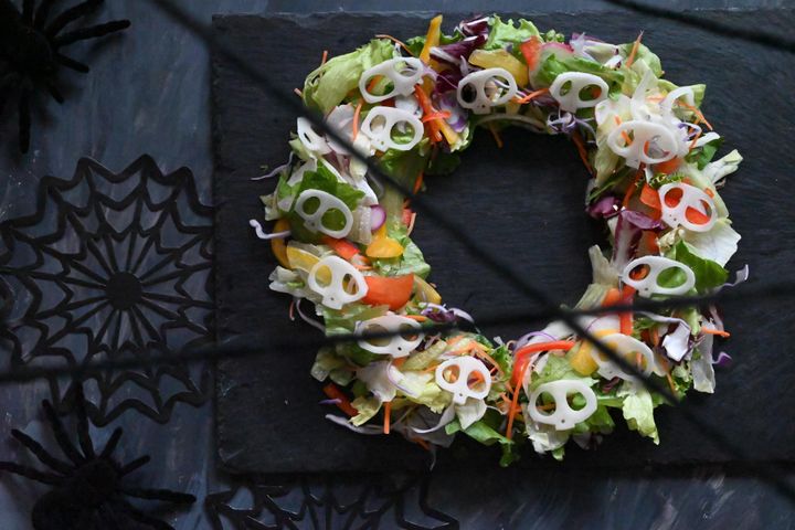 普通のサラダに添えるだけで、一気にハロウィン料理になりますよ。
