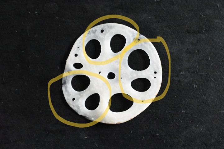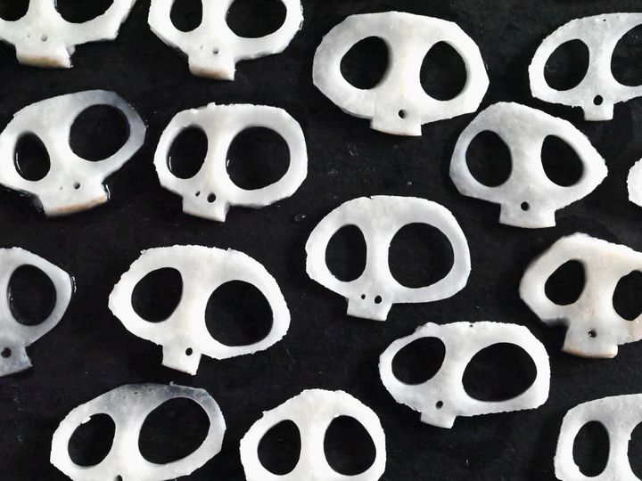不器用でも絶対作れる!添えるだけでハロウィンに♪れんこんとキッチンバサミだけで作れる「れんこんガイコツ」の作り方