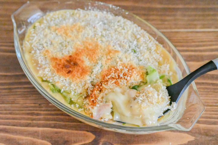 魚焼きグリル(またはトースター)でパン粉に焼き色がつくまで加熱して完成。