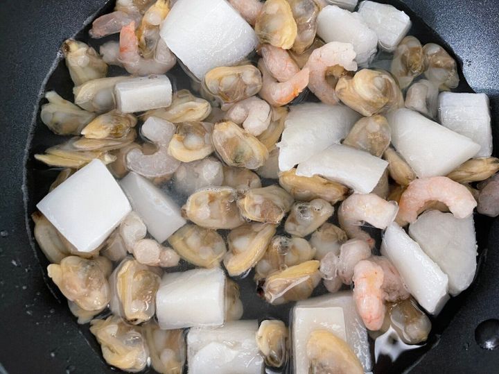 シーフードミックスは塩水で解凍すれば、よりおいしくいただけますよ。