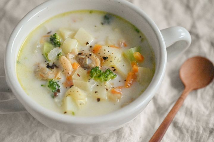 たっぷりの野菜を使う、クラムチャウダーのレシピです。