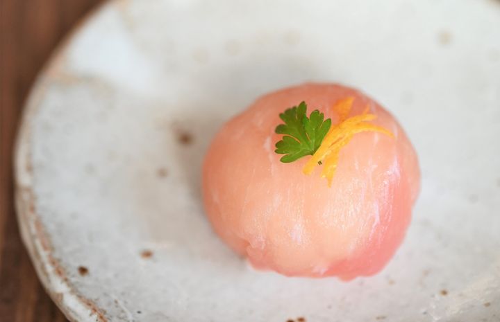 (1)炊いたごはんに刻んだゆずの皮、はちみつ、粉チーズを加えて混ぜる。