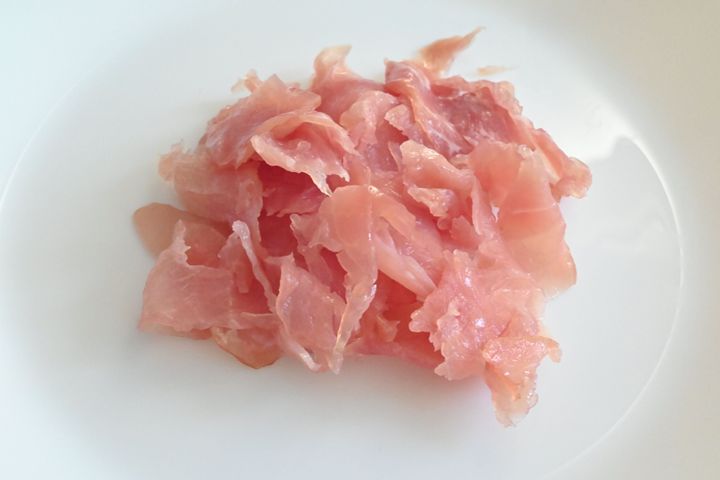 袋を開けると薄く切り落とされた生ハムがくっついて入っています。