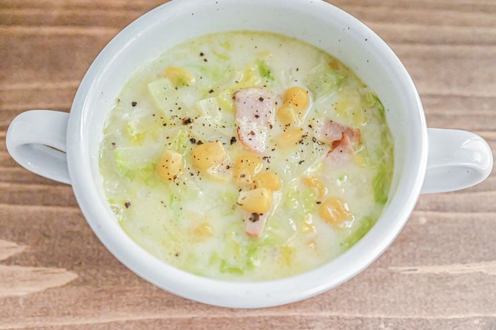 ほっこりおいしい♪白菜とコーンのミルクスープ